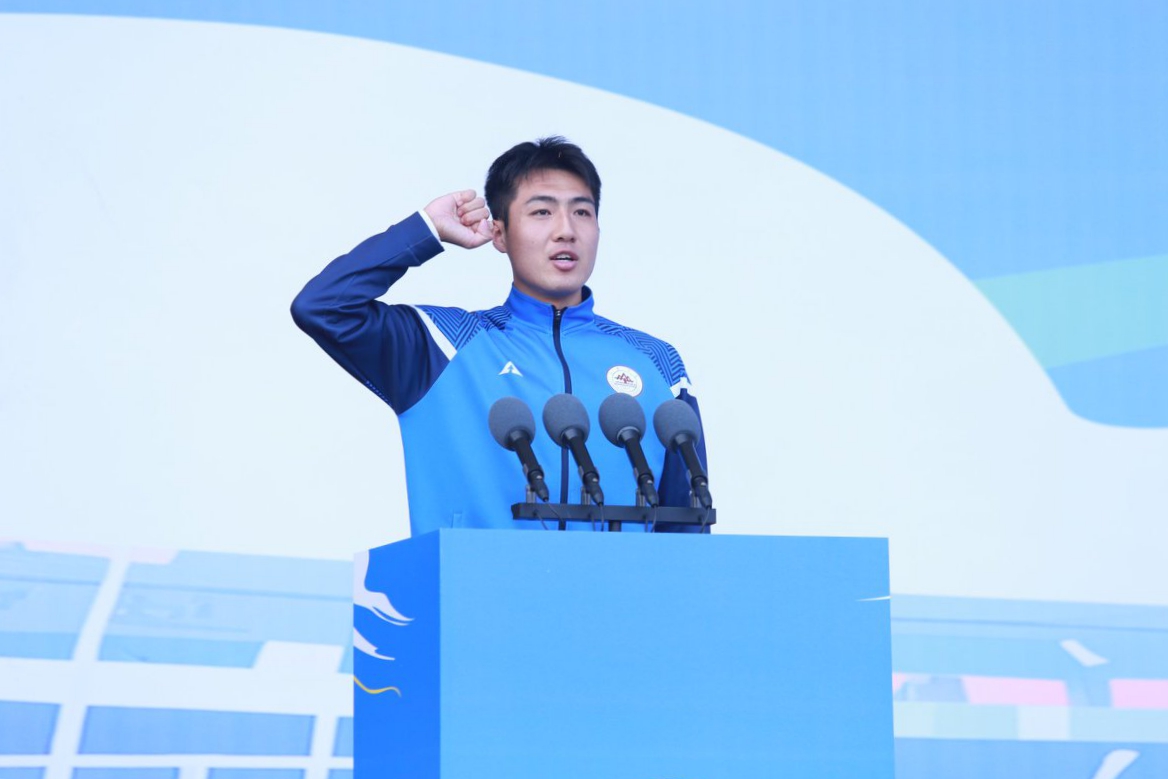 在莊嚴(yán)的宣誓環(huán)節(jié)中,山東大學(xué)足球隊(duì)隊(duì)長(zhǎng)胡宗凱代表運(yùn)動(dòng)員宣誓,國(guó)家級(jí)裁判員顧奕男代表裁判員宣誓,表達(dá)了以公平、公正、奮勇?tīng)?zhēng)先的精神投入比賽的決心。