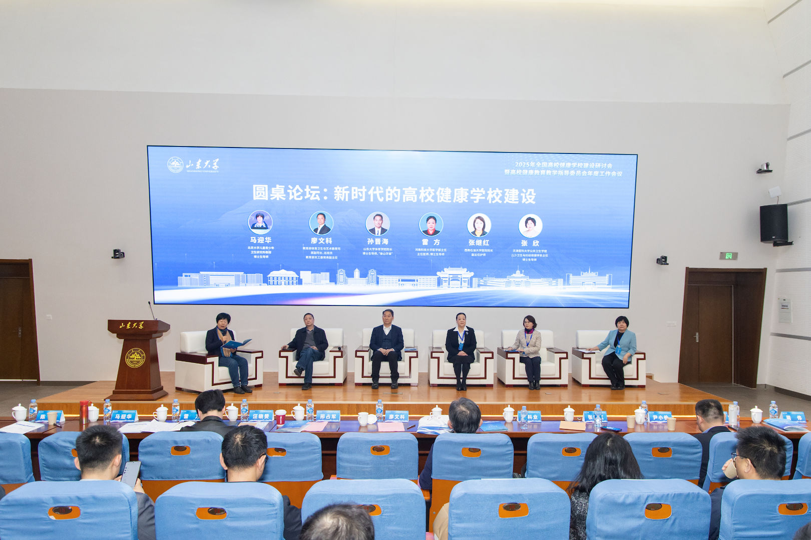 圓桌論壇環(huán)節(jié),廖文科、孫晉海、河南科技大學(xué)醫(yī)學(xué)部主任雷方、西南石油大學(xué)醫(yī)院院長張繼紅、天津醫(yī)科大學(xué)公共衛(wèi)生學(xué)院兒少衛(wèi)生與婦幼保健學(xué)系主任張欣共同圍繞“新時代的高校健康學(xué)校建設(shè)”主題展開深入對話,北京大學(xué)兒童青少年衛(wèi)生研究所教授馬迎華主持活動。