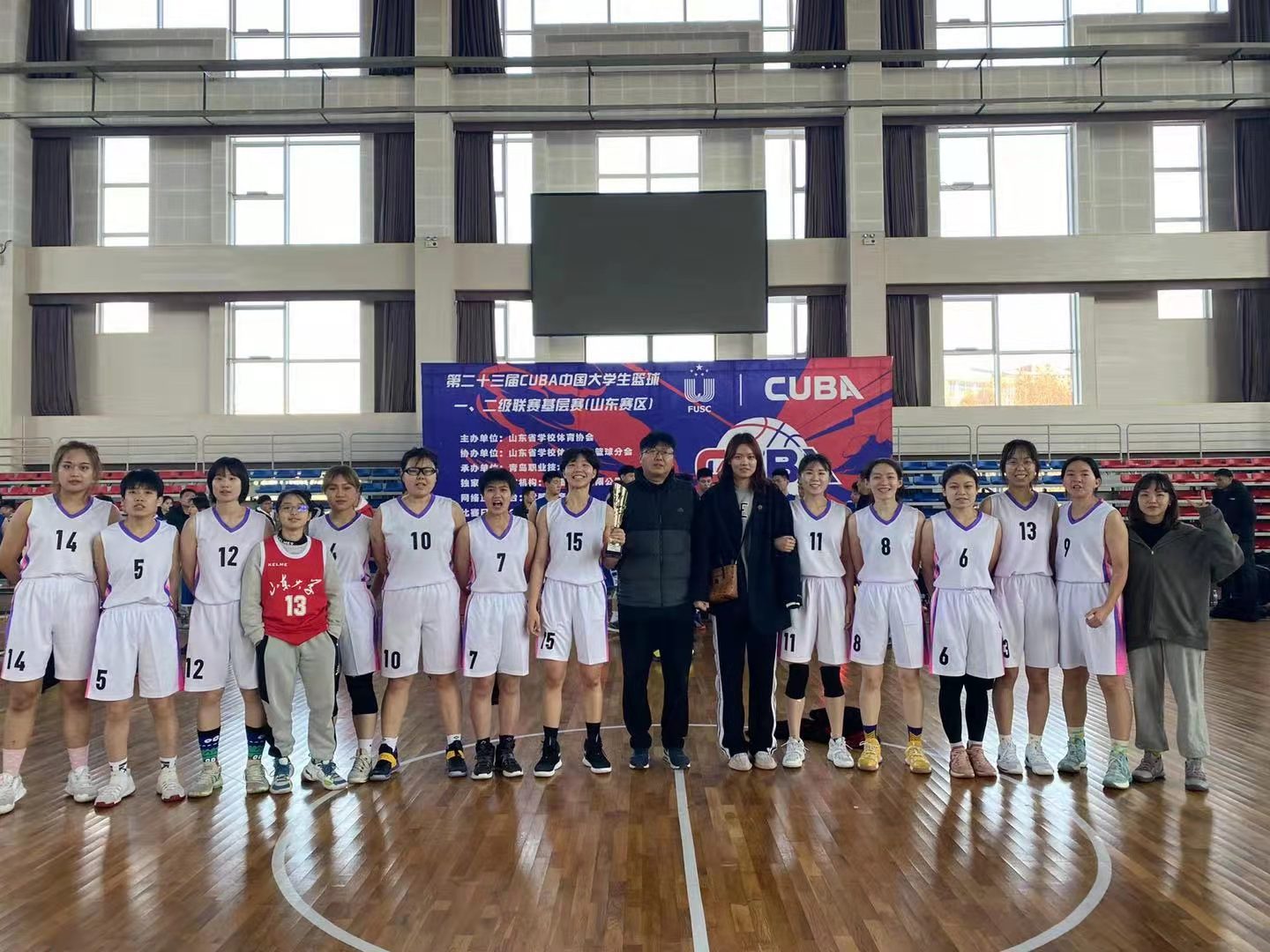 11月30日—12月6日,為期七天的第二十三屆中國大學(xué)生籃球聯(lián)賽基層賽(山東賽區(qū))落下帷幕。由來自控制學(xué)院、物理學(xué)院、藥學(xué)院、臨床醫(yī)學(xué)院、交通學(xué)院、管理學(xué)院、哲社學(xué)院、微電子學(xué)院的12名本科生及研究生組成的山東大學(xué)女子籃球隊(陽光組)在主教練畢偉華的帶領(lǐng)下,頑強(qiáng)拼搏,發(fā)揮了山大女籃永不服輸?shù)木瘢宫F(xiàn)了山大學(xué)子勃發(fā)向上的面貌,以小組全勝的好成績挺進(jìn)排位賽,并最終突破新高,獲得了山東省第三名的優(yōu)異成績。