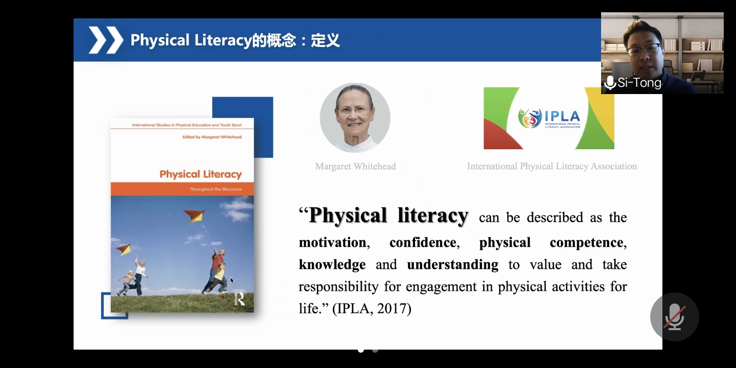 隨后,陳思同博士作了題為“Physical Literacy 研究的概況性綜述:現(xiàn)狀、挑戰(zhàn)、未來”的主題報告。陳思同博士表示Physical Literacy 作為促進積極活躍健康生活方式重要途徑之一,引起了學(xué)者的高度重視和研究興趣,美國健康和體育教育協(xié)會、加拿大Physical Literacy共識聲明、澳大利亞體育協(xié)會等不同國家、組織對PL有不同的定義,國內(nèi)對Physical Literacy的本土化解釋則包含體育意識、體育知識、體育行為、體育技能、體質(zhì)水平。隨后,陳思同博士就Physical Literacy近十年期刊的發(fā)文量、發(fā)文國家、人群分類、主題分類、測評工具的現(xiàn)狀進行分析,得出目前Physical Literacy的研究人群更傾向于兒童、研究主題更傾向于概念研究等,并提出Physical Literacy測量框架的整體構(gòu)建、不同人群的測評和干預(yù)、如何整合到體育課程之中、如何結(jié)合政策進行拓展等建議。
